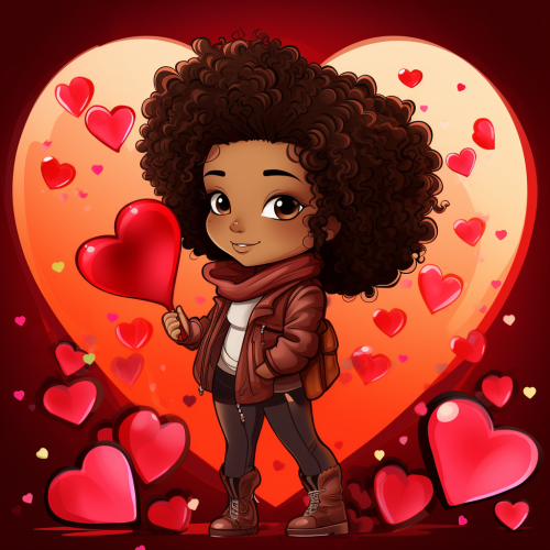 create a 12x12 image of an African American chibi Valentine’s Day design