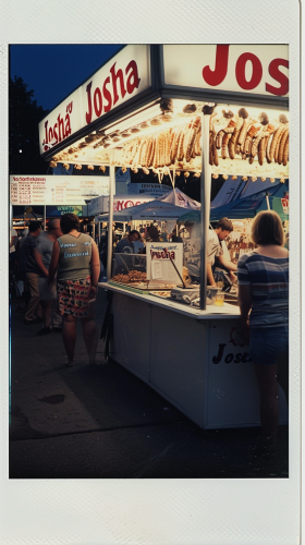 "Joscha" text made of sausages. Oktoberfest. 1950s polaroid. --ar 9:16 --v 6.0