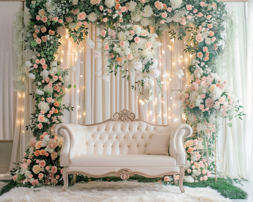 a photo of delicate wedding hall, wedding ceremony, real photo, magazine photo, relaxing --ar 5:4