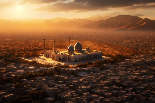 Aerial Image of Isfahan city, dramatic and photorealistic, golden hour --ar 3:2