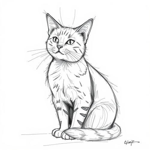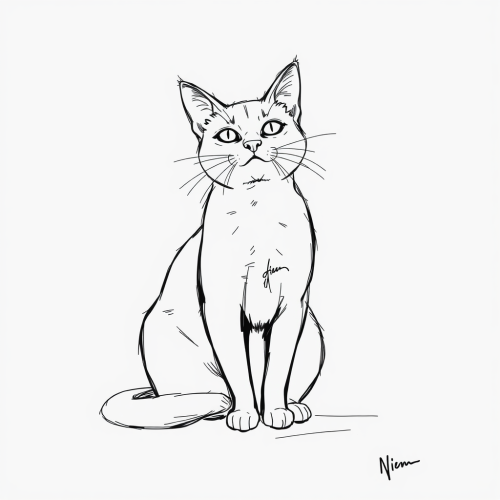 use a loose Studio Ghibli style to create a minimalist black-and-white line art drawing of an onlooking, curious cat. Include white background --ar 5:8