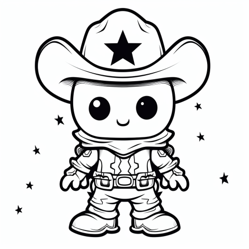 coloring book style, sticker style, cowboy baby ghost, isolated white background