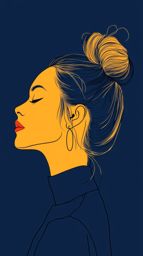 Feminine silhouette, showing woman with plenty of pizzazz, Line style, Minimalist style, Minimalist poster, Blue color, can be paired with yellow. --ar 9:16 --v 6.1