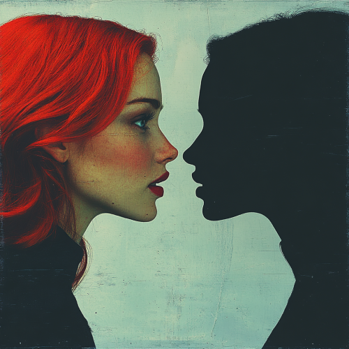 Illustrate a profile of a solitary woman with Edward Gorey’s cross-hatching technique, capturing a minimalist and eerie atmosphere. Her figure should be simplified, with a sharp, stylized silhouette, wearing a high-collared, dark garment that blends seamlessly into the minimal background. Use intricate cross-hatching to add texture and subtle shadow to her hair and facial features, conveying depth. The background should be almost empty, with only faint vertical lines or distressed patterns to enhance the feeling of isolation. Include a small, symbolic motif--like a tiny bird or delicate clock face--floating nearby, hinting at themes of time and introspection.