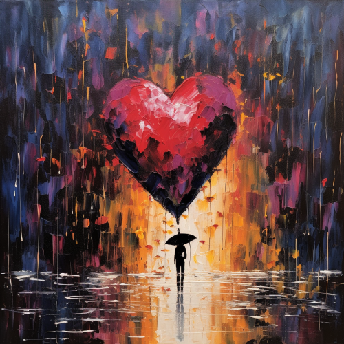 abstract flat painting of a heart shape in the rain --style raw