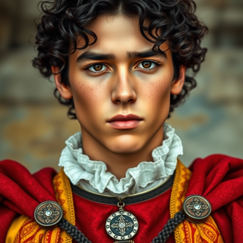 The 17-year-old Valyrian has the characteristic beauty of his lineage, with striking, almost otherworldly features that speak to his noble heritage. His skin is fair and smooth, contrasting beautifully with his light, silvery hair, which is cut short and neat, adding a sense of youthful energy and freshness to his appearance. His eyes are bright and expressive, filled with a warmth and curiosity that hint at his artistic spirit. Always smiling, his face radiates softness and joy, exuding a sympathetic and friendly charm that draws others to him. His smile is wide and genuine, a clear reflection of his kind nature and open-hearted approach to life. There’s an unmistakable spark in his eyes, suggesting a mind that constantly seeks inspiration and finds beauty in the world around him. Unlike a warrior, his hands show the faint marks of paint or ink--subtle hints of his dedication to his craft rather than the callouses of battle. He dresses in fine, well-crafted clothes that reflect his noble status, with elegant details and colors that highlight his artistic sensibilities. Perhaps he wears a deep blue or silver tunic with intricate patterns, mirroring his appreciation for detail. His demeanor is open and approachable, exuding a warmth that makes him easily likable. Though he carries himself with the grace and confidence of a noble, there is an undeniable playfulness in his smile and posture, marking him as a young artist exploring the world with excitement and passion rather than seeking glory on the battlefield.