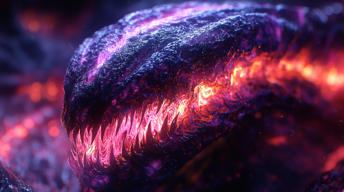 Photo realistic: an alien hybrid monster, constructed of synthwave neon optic fibers exists In a fluorescent liquid void, --chaos 10 --v 6.1 --style raw --s 1000 --ar 16:9 --q 2