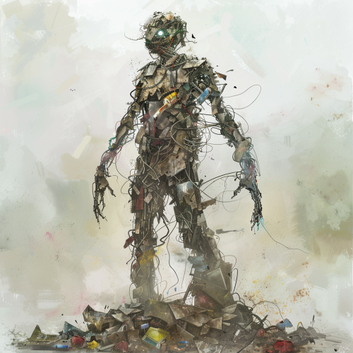 color full cubist alien creatures made of wood and metal --ar 2:3 --s 250