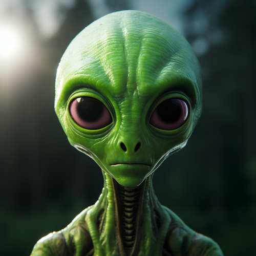 3 small grey alien (all males, wearing turtleneck black bodyfit jumpsuit, and with pale greyish skin, huge dark eyes) sitting under a big oak tree and talking to a group of young people, in a friendly manner. Friendly contact, initiated by humans. --ar 16:9 --p 4h3co63