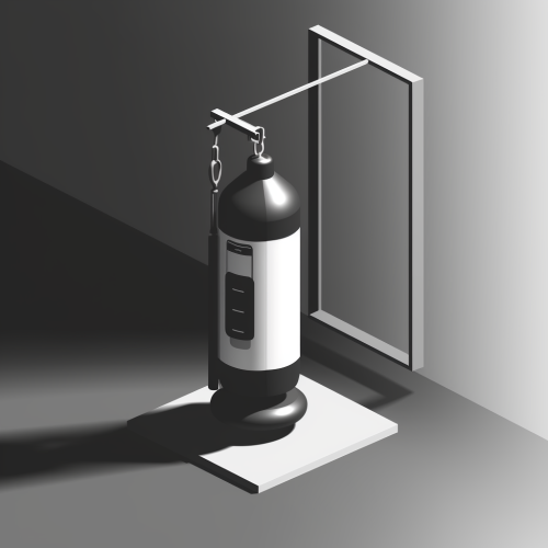 hd drawing, isometric silouhette style of a gym punching bag. minimalistic design, monotone, gayscale
