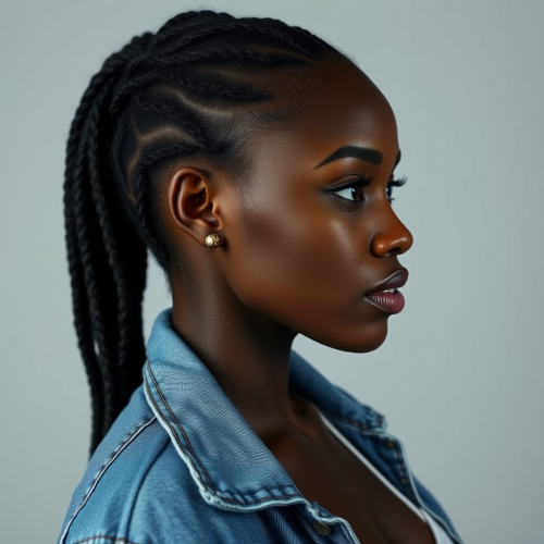A portrait of a woman's head with gray hair, captured in a three-quarter view from behind. The hair is elegantly styled, cascading softly down her back, with subtle highlights that catch the light. The focus is on the graceful curve of her neck and the delicate features of her profile, suggesting wisdom and experience. The background is softly blurred to emphasize the subject, creating a serene and contemplative atmosphere.