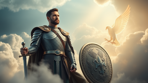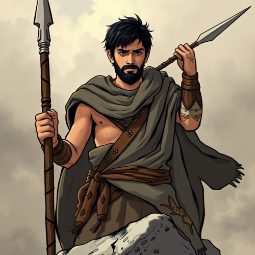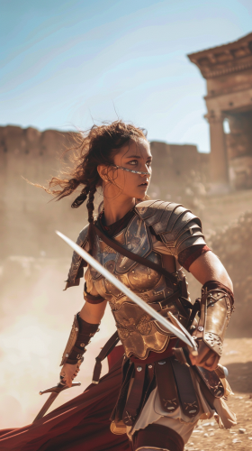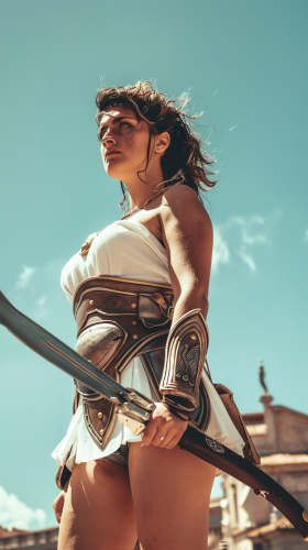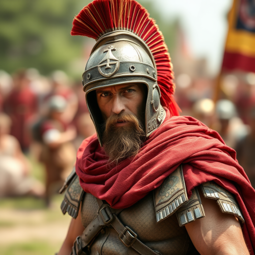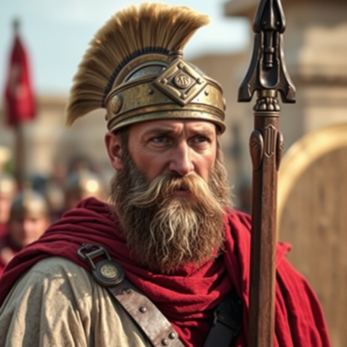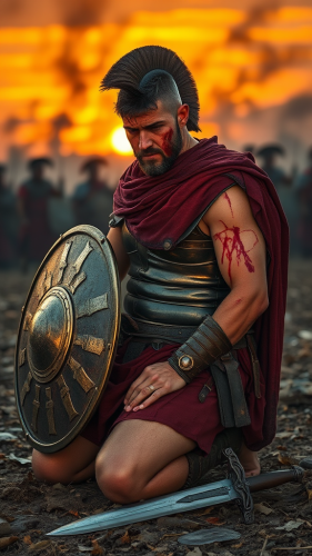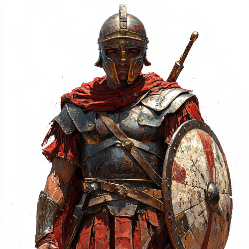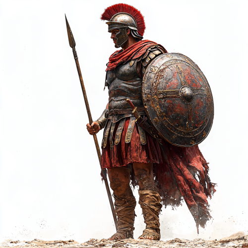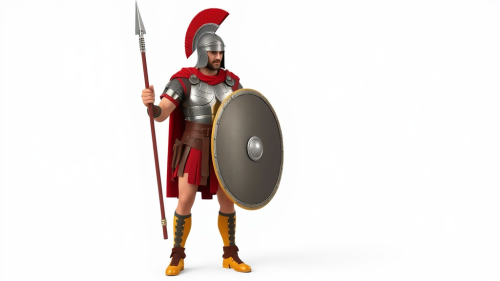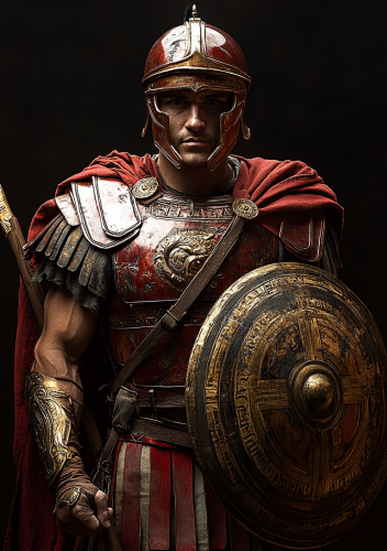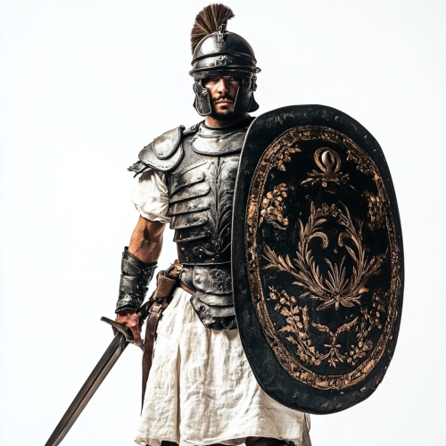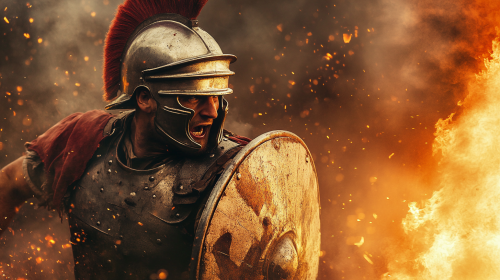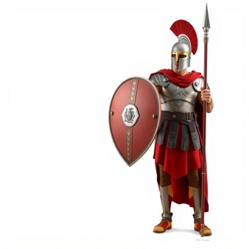Ancient Roman Soldier Defending with Shield and Spear