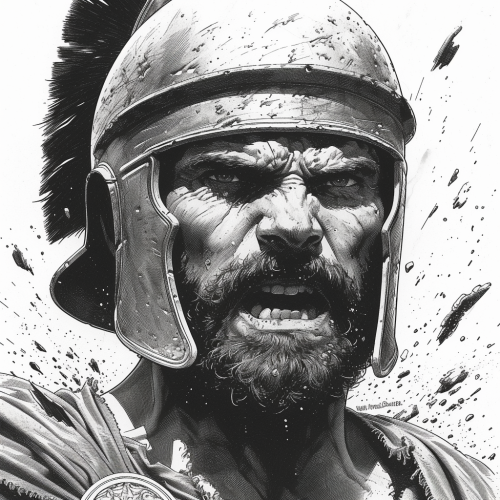 angry Roman soldier, white background, inking, hand-drawn comics, by Frank Cho --stylize 750 --v 6.0