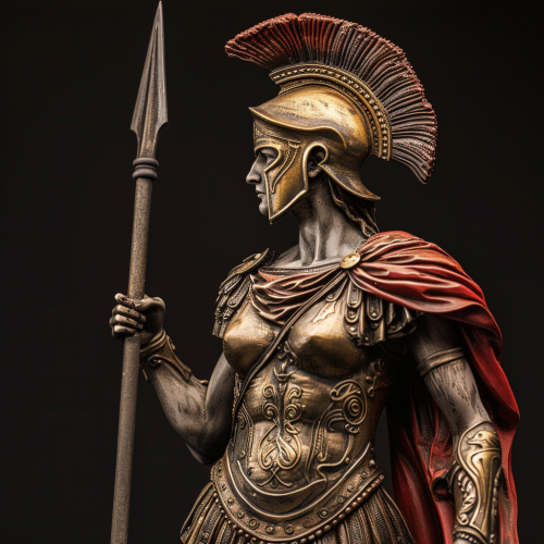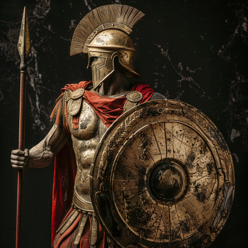 ancient Greek spartan soldier with full armor holding spear and shield --v 6.0