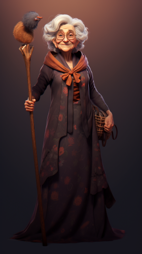 friendly witch, friendly, grandmotherly smile, in art style of pixar, full body --ar 9:16