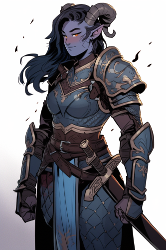 A warrior girl in armor, with well-developed muscles. With short swords.dungeons and dragons concept art, character design, mystic atmosphere, vox machina, critical role --niji 5 --ar 2:3