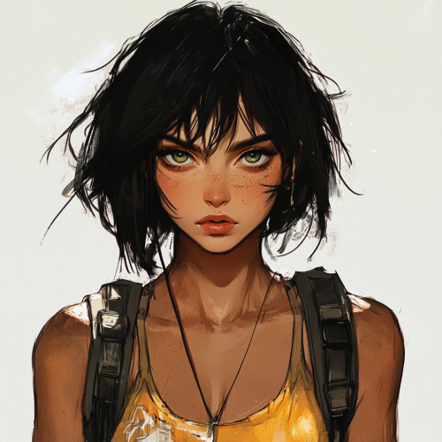 Eyes: Deep, clear eyes resembling starlight, containing curiosity about the universe and determination. Hair: Short, slightly matted, dark bob, with traces of wind and travel. Skin: Lightly tanned skin, showing traces of living in harmony with nature. Body Type: Slender yet strong physique, stamina gained from constant travel and exploration. Clothing: Comfortable traveler's clothing, always carry an old backpack and pack all the necessary tools.