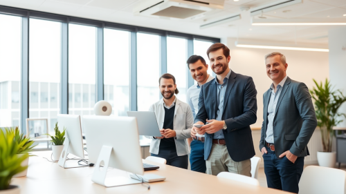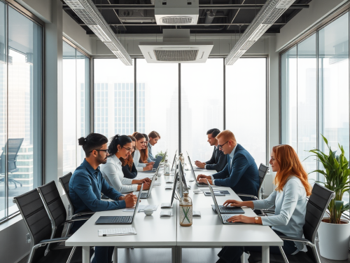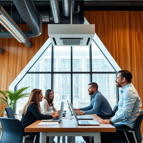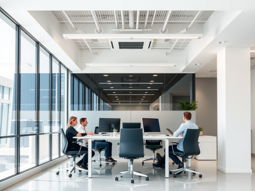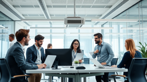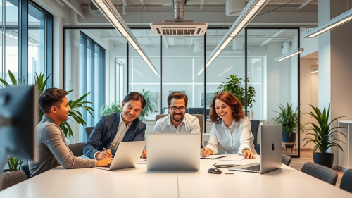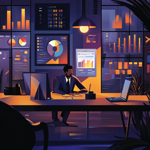 Generate a digital art for A digital art scene showing a business professional negotiating with suppliers, surrounded by charts and graphs indicating cost reduction. The background is a sleek, modern office setting with a focus on the color black. --ar 1:1