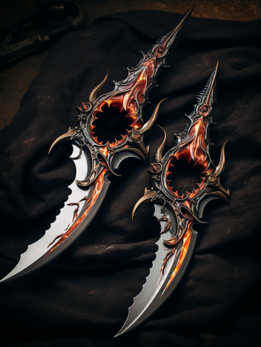 alien daggers with a vintage feel in the style of pen and ink in 2 dimensional space