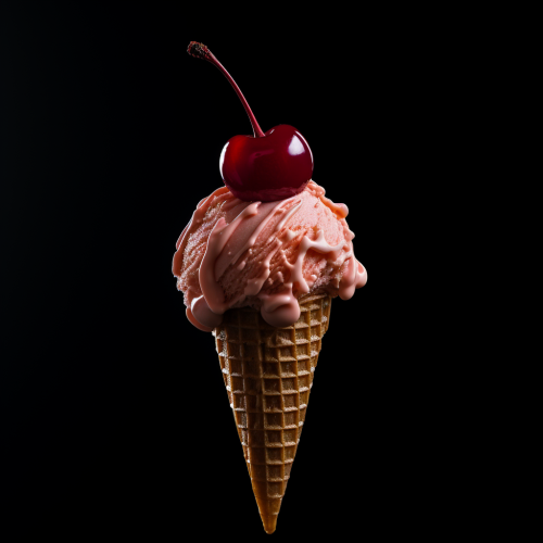 heart shaped ice cream scoop on a cone, with a cherry on top, octane render, black background, sony alpha a7, iso 800