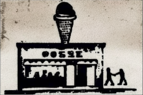 graffiti, ink stamp effect of an italian icecream shop, black ink on a white background, art by Banksy --style cursed --v 4 --ar 3:2 --upbeta --s 250