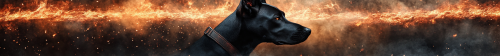 Chien Doberman avec des pouvoirs de feu, son pelage est noir avec des reflets rouges et dorés, créant un effet de braises ardentes. Ses yeux scintillent d’une lueur de feu, et des éclats de flammes se forment autour de ses pattes et de sa queue. Le fond montre un paysage en feu avec des flammes s’élevant dans l’air et des cendres flottantes. 8K, highly detailed, --ar 9:16