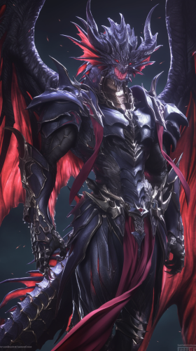 Bahamut from Final Fantasy X, Bahamut is metallic armored dragon, the inside of his wings are red , make it look like a humanoid, bright eyes, The photo is hyper realistic and cinematically hyper detailed,ultra 3d rendering, in the style of unreal engine, hyper rendering, 3D render, 32k uhd, cinematic portrait , best sharpness, ultra realistic, the photo is taken with a Canon Eos r50 --niji 6 --stylize 1000 --style raw --ar 9:16