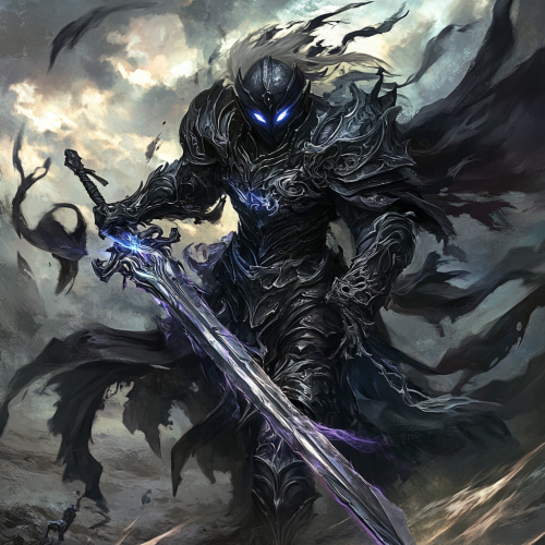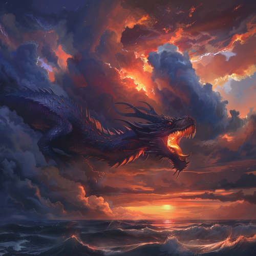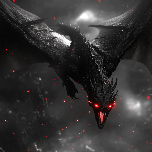 Black Dragon with Red Glowing Eyes in Stormy Sky