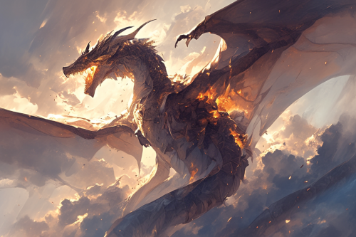 A fierce dragon breathing fire against a stormy sky. --ar 3:2 --niji 6
