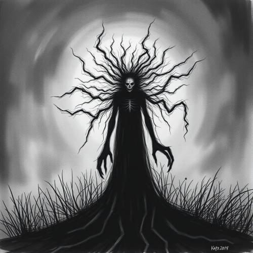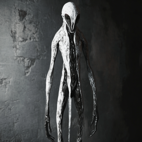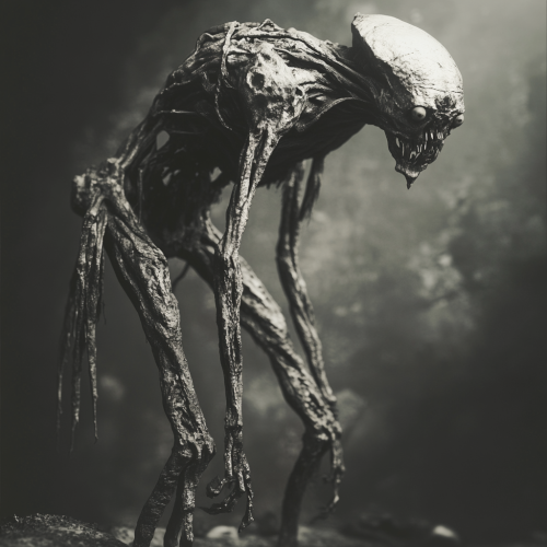 photorealistic detailed tall skinny humanoid creature, extremly detailed, black and white, 8 k, realistic, sharp focus, cosmic horror creature, cosmic horror