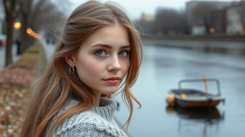 Create a photograph of a young blonde woman holding a smartphone, gazing intently at the screen. On the phone’s display, she sees a reflection of herself as a child, as if she’s using a nostalgic Instagram filter. The filter should transform her current appearance into a younger version of herself, showing her with childhood features and attire. The setting should be contemporary, with natural lighting that highlights both the woman and the screen. The focus is on the emotional impact of seeing her past self through the digital lens --ar 9:16 --v 6.1