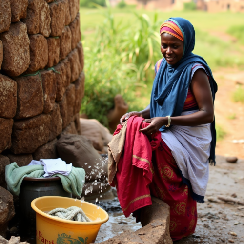 Photorealistic image of a blonde influencer with curly hair, standing in front of her closet, deciding what to wear. She's from the back, wearing a towel, and her hair is pulled back into a loose ponytail. The closet is filled with clothes hanging from shelves, shoes on the floor and a mirror nearby. She's holding two different outfits, looking a little uncertain but amused, as if wondering which one to choose for the day. The room is lit by a soft glow and gives the impression of being inhabited. The scene illustrates a realistic, everyday decision that everyone can relate to.