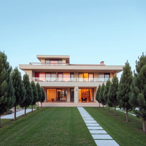 a modern house with large windows to maximize natural light, an open floor plan that fosters connection between spaces, and sustainable materials that integrate nature and promote a healthy lifestyle.