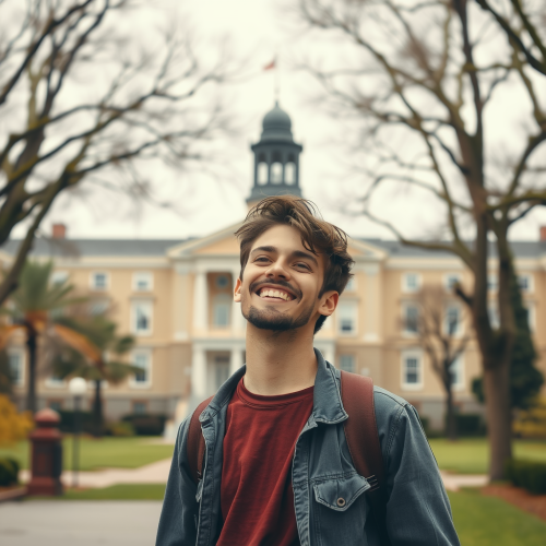 Imagine the 'run and run as fast as you can' gingerbread man as a student in a US university. This gingerbread man is dressed in typical college attire, perhaps wearing a hoodie, jeans, and carrying a backpack. He has a lively and cheerful demeanor, reflecting the playful spirit of the classic character. The setting is a typical American university campus, with elements like collegiate buildings, green lawns, and students around. The gingerbread man should blend into the university setting while maintaining his unique, whimsical gingerbread characteristics.