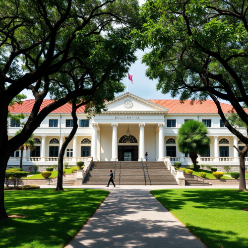 A class of 10 graduate students walking together on a university campus, trees, summer landscape, and beautiful sky, crystal clear image, complementary vivid colors, ultra high resolution, magical touches --ar 16:9