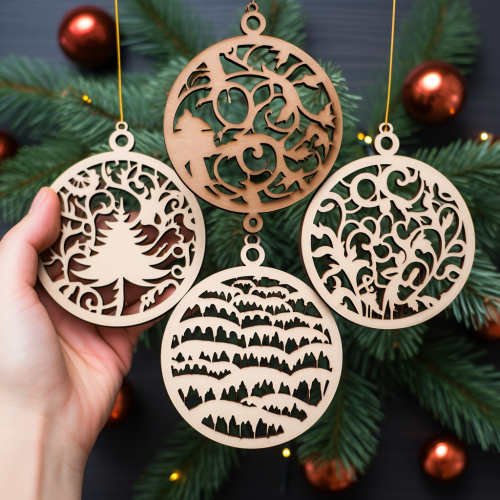 Laser cut christmas balls ornaments svg bundle Glowforge christmas tree decor svg pattern Christmas ornaments dxf cut plan vector