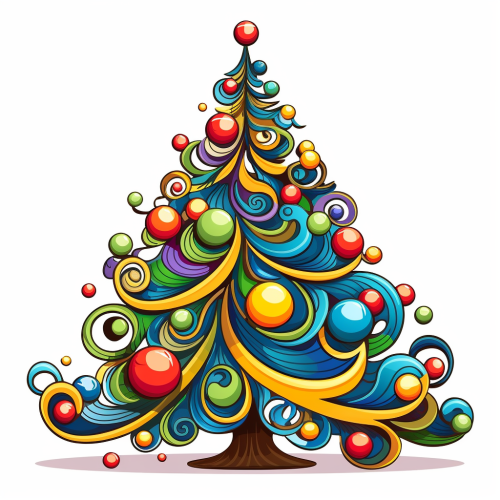 cartoon style, christmas tree with ornaments, vivid color, clipart, isolated on white background, chaos 100 --no background