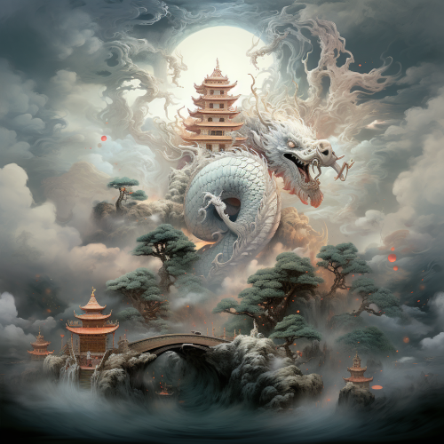 Full body image of the dragon, illustration style of the dragon, Chinese New Year style, auspicious and festive, lantern, temple architecture, auspicious clouds, flowers, red Chinese elements, lantern, fantasy and fairyland feeling, sharp contrast and high saturation of the big red color scheme, illustration hand drawn style, 8K resolution, high details, ultra-high definition image --v 6.0 --ar 9:16
