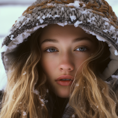 kodak 400, Gigi Hadid while it snows, close up, ultra detailed, muted colors--ar 51:64 --v 5.2