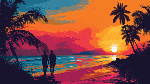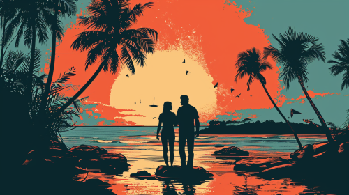 create an invitation card to a beach party, celebrating 21 years of love between two people. Use a bold graphic design style. --style raw --ar 16:9 --v 6.0