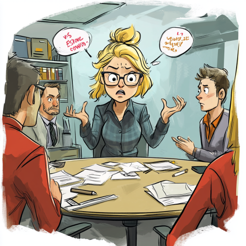 Two colleagues standing near an office doorway, one leaning in to whisper something to the other, while a third person is visible in the background, working at their desk, unaware that their reputation is being discussed. shot with Kodak Portra 400 film --s 750 --v 6.1 --style raw