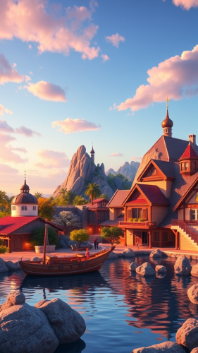 3D Pixar Disney Style,Walking hand in hand through the quaint streets of a village, a young woman carries a map, tracing their route, while a man by her side peers through a telescope, their laughter echoing against the stone walls, the air filled with the promise of adventure, Illustration, digital painting,--seed 216339530 --ar 16:9 --v 5.0