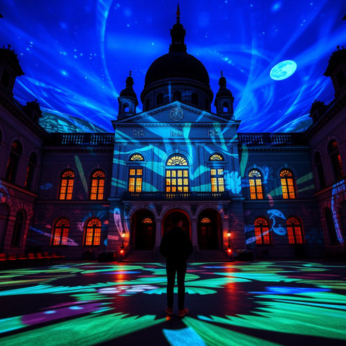 a group of dancers stops and stares in surprise at a young man in a suit stained with bright colors of all the colors of the rainbow. it's night outside, lanterns are shining brightly, it's raining lightly. the carnival atmosphere captures everyone present, the mood of lightness and surprise overflows the air, the atmosphere is saturated with exciting energy, as if sparks of love and joy are scattered everywhere, the lighting is soft and multicolored, colored spotlights illuminate each dancer, creating a play of shadows and light, bright colors smoothly change each other, giving the scene cheerfulness and dynamics. --ar 16:9 --c 14 --s 950 --style 2R2YPCL8uRmuKJahCMpQpkANaECsV2JVNIAQHnTr0Y --v 5.2