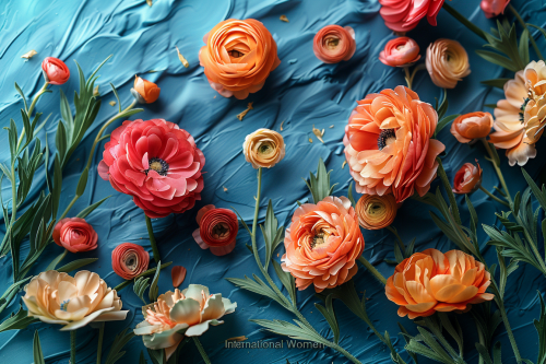 colorful pastel flowers with abstract background with International Women's Day concept with text "International Women's Day" --ar 3:2 --v 6.0 --s 750