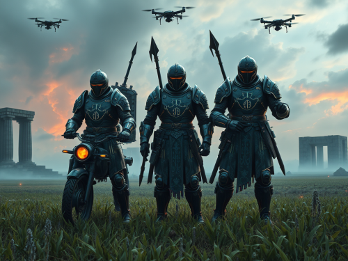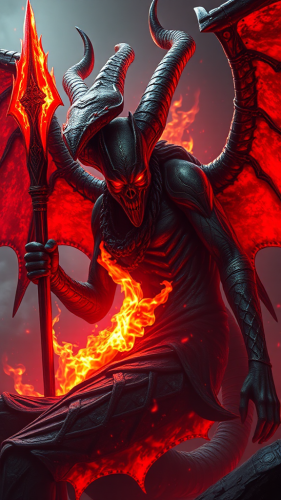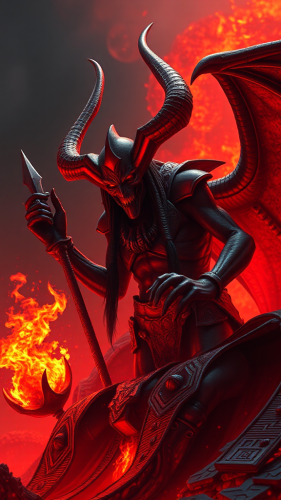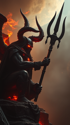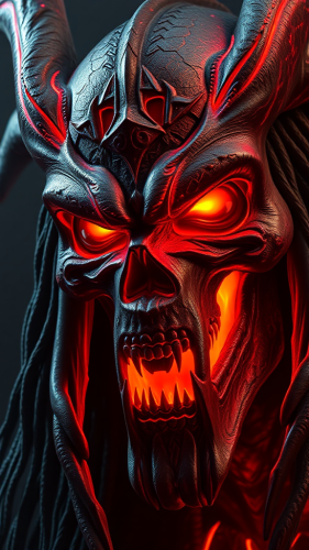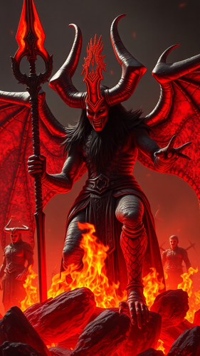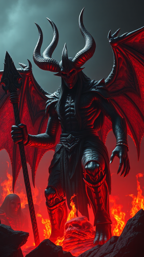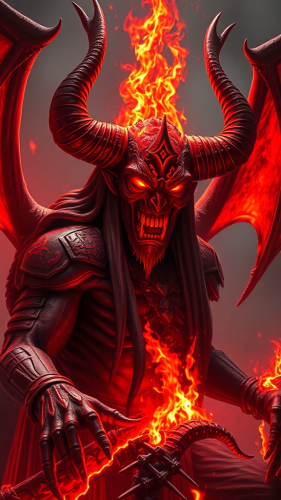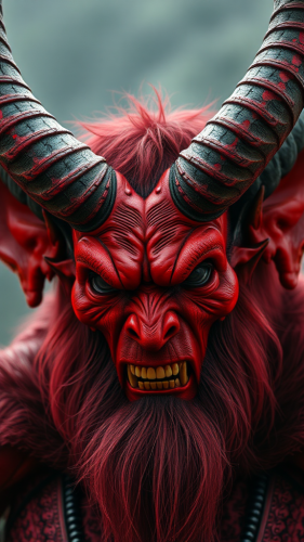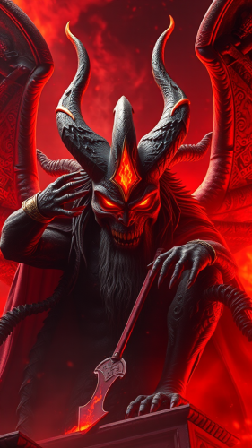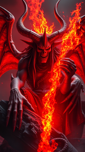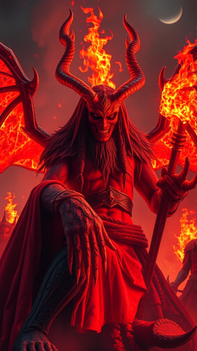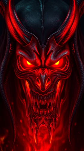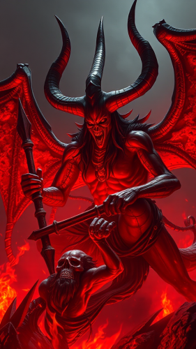 Creepy shadowy skulls with ancient runes; Satan and Jesus laugh at star