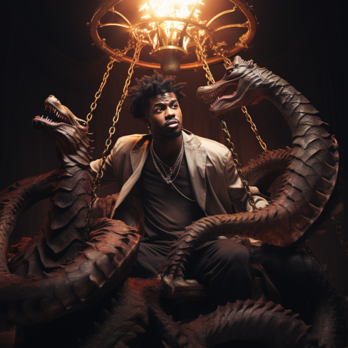 Jesus is using his power to capture Satan Snake with Lil Nas X riding on it in a holy cage