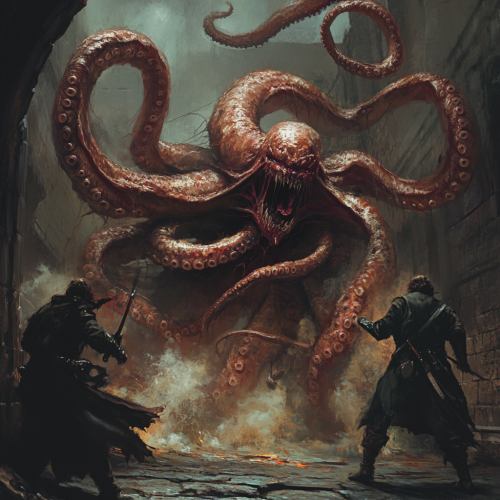 realistic photo of cthulu destroying an oil rig off the coast of scotland, stormy weather, early afternoon, using a high definition camera (even with water on the lens), Cthulu eldritch horror slamming on the oil rig with fire and smoke in the background. Scary and surreal, indistinguishable from real life, this can't be happening, ultra high definition --ar 16:9 --v 6.1