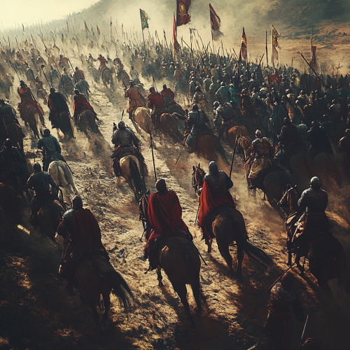 llustration, ink on paper, of a fantasy occult trading card of an ancient greek soldier attacking with a spear an ancient persian warrior, the lance is piercing the persian soldier, battle background, view from above in the art style of Graham Ingels, Mike Mignola, centered, psychedelic colors, vintage, --ar 3:4 --v 6.0 --s 75