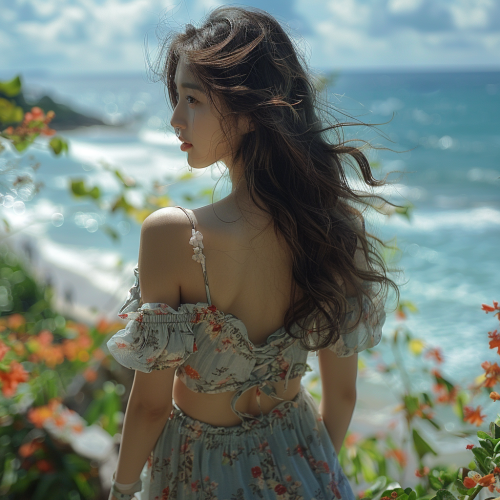 A thin, athletic, blonde woman walking on the beach. She's wearing a tank top. Ultrarealistic. --ar 9:16 --v 6.0