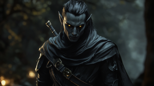 male dark elf rogue thief, d&d 5e, dark fantasy, full body shot, action shot, stealth pose, night, 4k, vivid, 4k ultra detailed, 4k cinematic, 4k hyper detailed, 4k ultra realistic, 4k hyper realistic, 4k photorealistic, --ar 16:9 --v 6.1